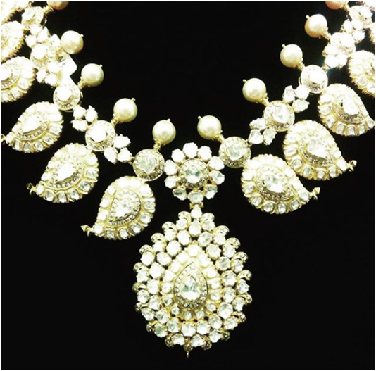 This divine collection from the house of Charuu Sharma is a tribute to the celestial beauty of the solar eclipse. Charuu Sharma draws inspiration from these heavenly bodies and crafts brilliant jewels ornamented in glittering diamonds and numerous red rubies.